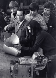 Gerlinde Beck beim Unterricht mit Lehrlingen in der Süddeutschen Kühlerfabrik, 1965