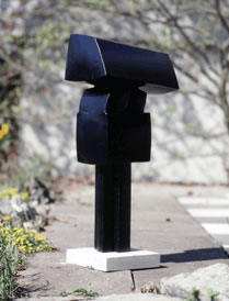 Trotz ihrer abstrakten Titel – Hermen und Stelen – rufen die labilen Quaderkompositionen der 1960er Jahre mit ihren überdimensionierten Köpfen auf kleineren Stand- und Haltekörpern noch figurale Assoziationen hervor.