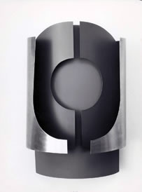 "Manchmal benütze ich Farbe auch nur, um ein kleines Leuchten, oder auch nur eine kleine Helligkeit im Innersten durch Abstufung der Farben beziehungsweise Farbwerte nach außen hin durchdringen zu lassen. Dies wird ebenso in seinem Umkehrsinn – tiefstes Schwarz im Innersten der Figur – als Höhlung nach innen, praktiziert." |
