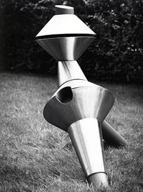 „Meine Skulpturen, oft für gegenstandslose Dinge angesehen, sind aus der menschlichen Figur entwickelt. Ausgangspunkt ist das Naheliegendste – ich selbst. Meine Proportionen und Maßeinheiten, die mir von der Natur mitgegeben sind. Daraus resultiert, daß viele meiner Arbeiten in Bewegung nd Haltung geradezu Selbstporträts geworden sind.“ Diese Aussage von Gerlinde Beck passt auf eine Arbeit wie Wibke aus der Reihe Physiognomics zu, um 1970 in V 2a-Stahl mit Farbe geschaffen.