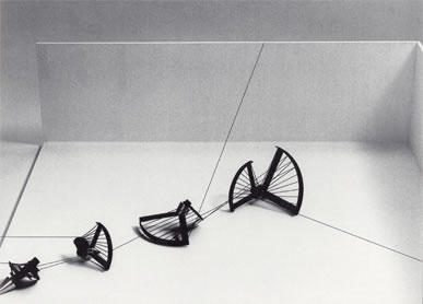 "Die Welt ist Klang. Jedes Material klingt. Meine Raumkörper haben sich den auch wie von selbst zu harmonischen Klangkombinationen zusammengefügt. Grenzen zwischen den Disziplinen gibt es in Wirklichkeit nicht, sie existieren nur im menschlichen Denken."