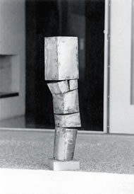 Sie reizt hier die extreme Scheinlabilität der aufeinander getürmten Kuben aus, deren drohender Sturz der einer überdehnten Bewegung eines anthropomorphen Körpers wäre – nicht der von einfachen geometrischen Formen.