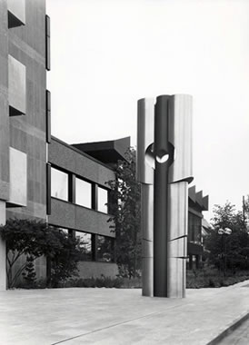 Die Skulptur steht als Zeichen kontrapunktisch zum sehr hohen Neubau. Sie behauptet sich mit einer Höhe von 720 cm, wird als vom Chromnickelstahl umgebene innere rote Säule zu einer Figur mit Signalwirkung und ist Wahrzeichen nicht nur für die Bausparkasse, sondern Blickpunkt für die gesamte Stadt geworden. Formal wird das Rohr verwendet, seine Schnitte und Ausschnitte, die Gerlinde Beck in einer idealen ausgewogenen Spannung komponiert.