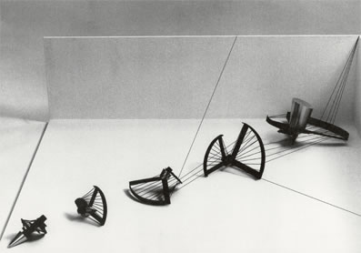 "Die Welt ist Klang. Jedes Material klingt. Meine Raumkörper haben sich den auch wie von selbst zu harmonischen Klangkombinationen zusammengefügt. Grenzen zwischen den Disziplinen gibt es in Wirklichkeit nicht, sie existieren nur im menschlichen Denken." |